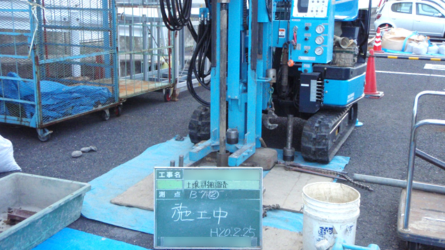 埋設物が無いのを確認したらマシンの搬入と施工前作業を行います。